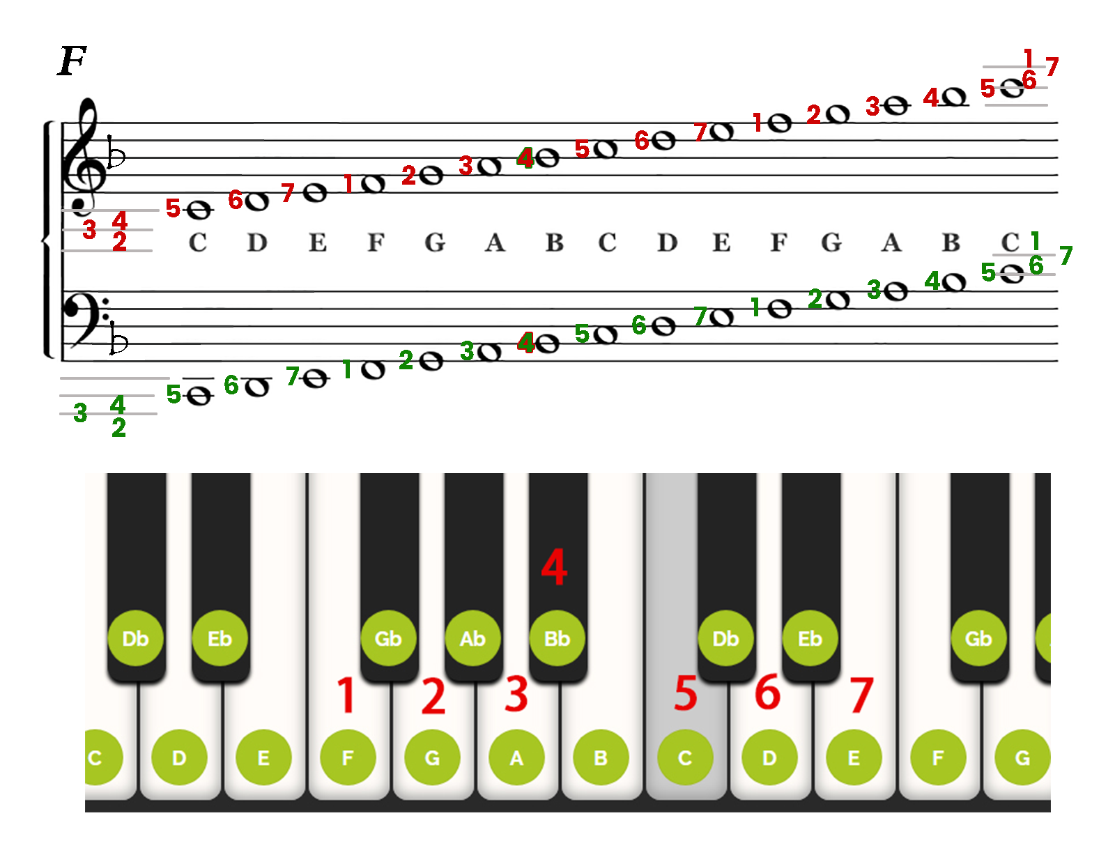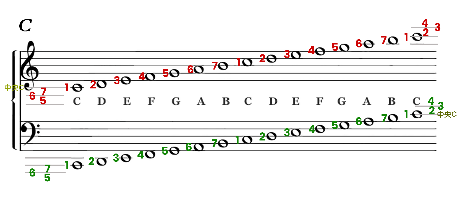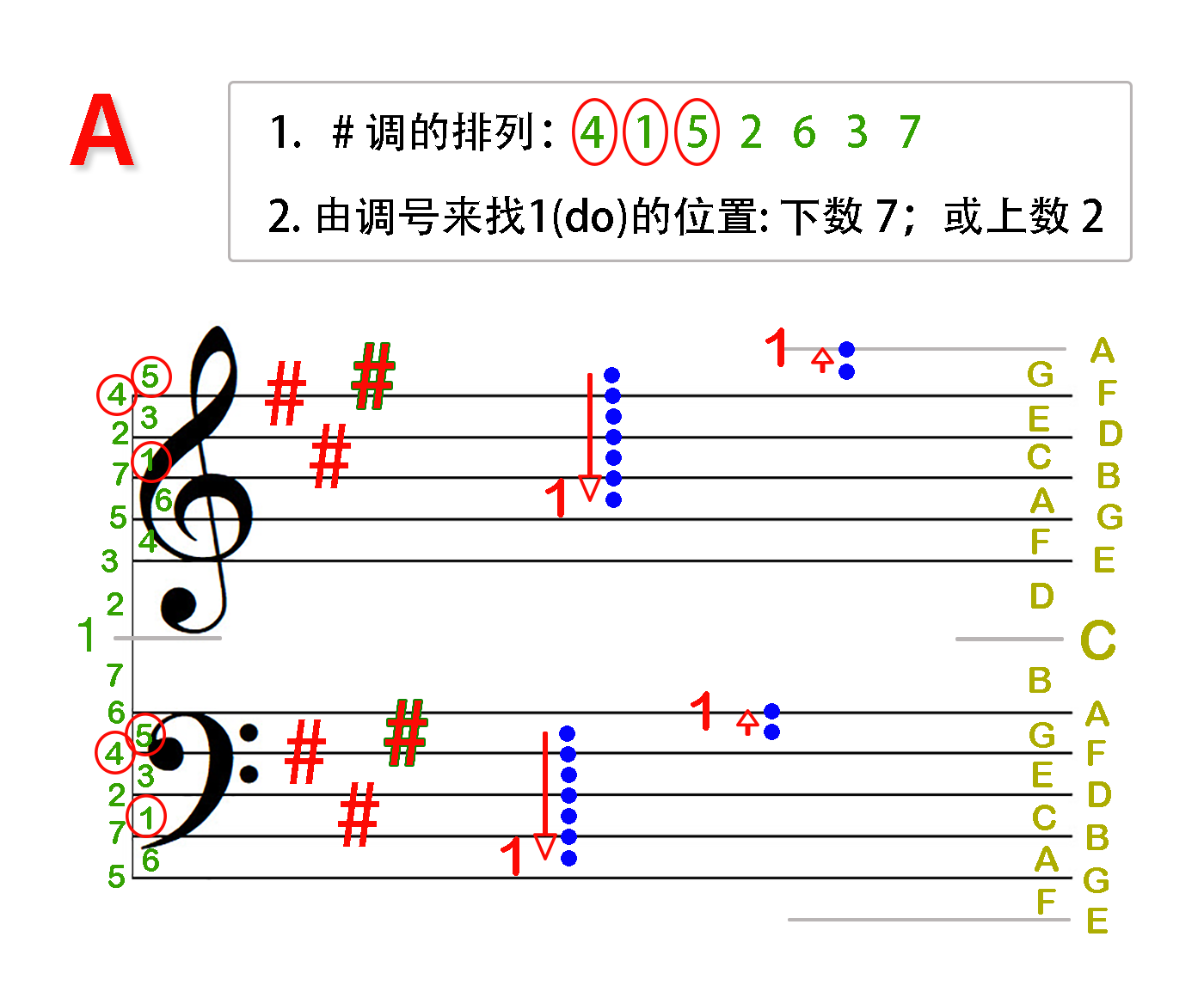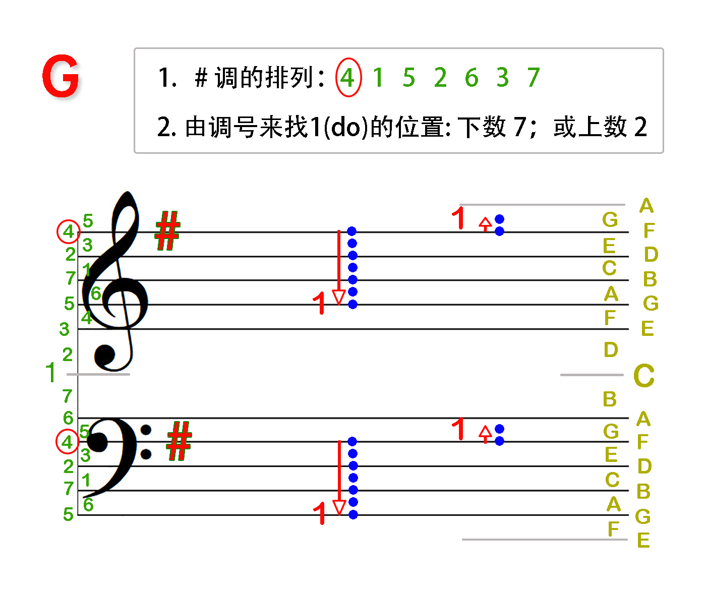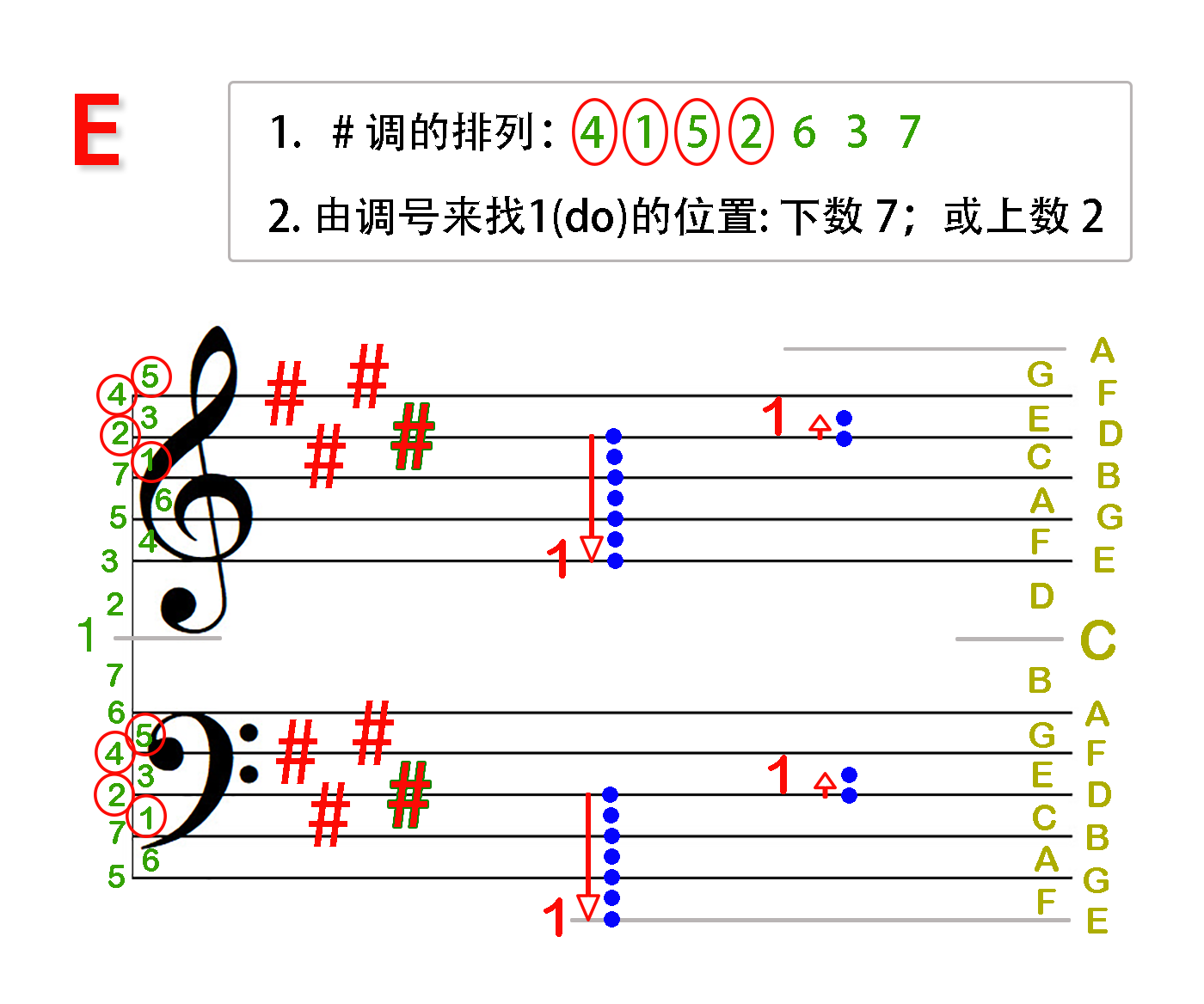 - 大3和弦 Major Triad(大3度+小3度):1-3-5;4-6-•1;5-7-•2;