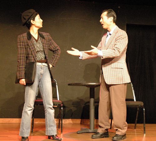 2007年1月27日下午,在芝加哥的西郊瑞柏市中心一个不起眼的小剧场,东方艺术团筹备了三个月的《诗歌小品话剧欣赏会》开场了。许多芝加哥地区的舞台表演艺术爱好者们和朋友们,从四面八方驱车而来,端坐在静静的剧场,等待着表演的开始。 这是一场大胆尝试的演出,身为东方话剧团团长和此次活动的组织者,赵延彤心里没有底,演员们也没有底。如此小的剧场,演员与观众如此近的距离,不唱不跳不弹不奏,仅凭一张嘴说。这样的演出,观众能接受吗? 演出准时开始了。感情真挚的原创诗歌朗诵,妙趣横生的自编小品,原汁原味的独角戏,人物个性栩栩如生的小话剧,精彩的节目编排,认真的舞台表演,使观众不知不觉地也入了戏。长达一个半小时的演出结束了,“怎么就没有了?”,观众们如梦初醒,意犹未尽。 |