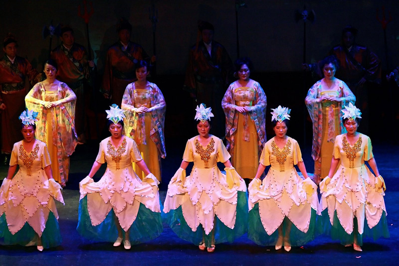 女声小合唱《小步舞曲》,将世界著名的巴赫的小夜曲搬上了东方的舞台上。十位歌者舞动着多姿的彩裙, 唱起优美的舞曲。这支著名小夜曲合声旋律优美,音乐饱满,带来了另一种美的享受。