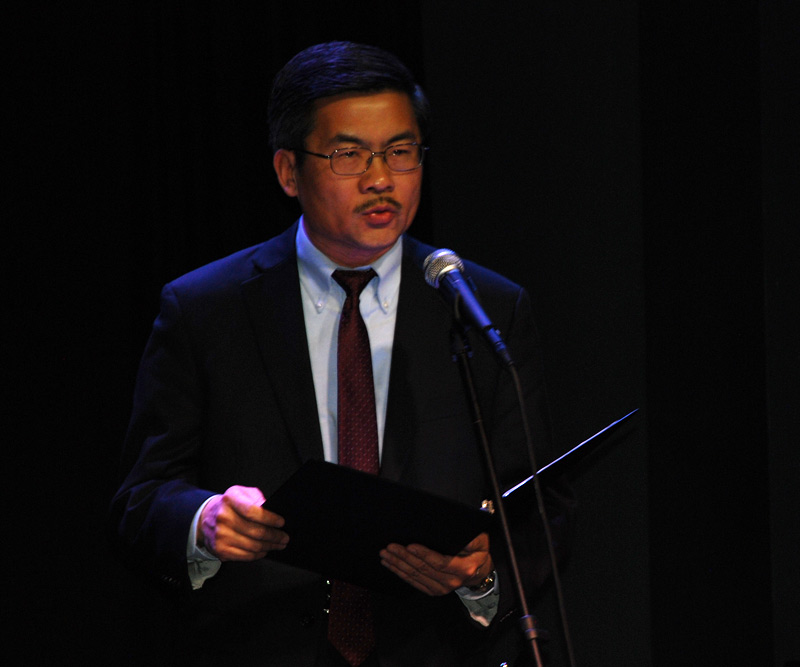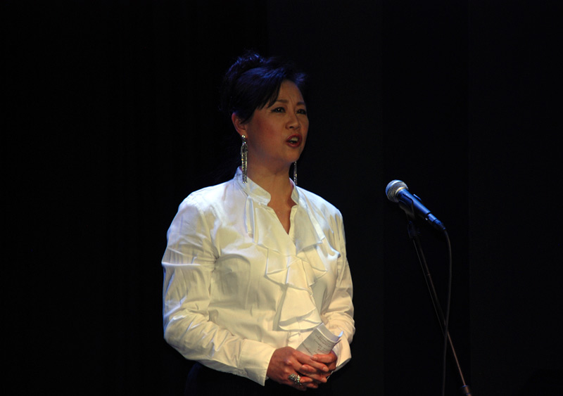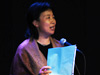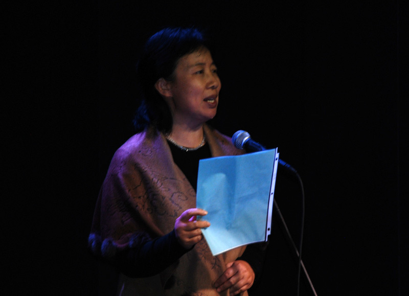 连续四年的朗诵会主持人郑征的主持风格更加成熟。她对朗诵作品和作者的介绍,自然亲切,娓娓道来,不仅拓展了舞台的时空,也为朗诵会抹上了浓浓的文学色彩。深受观众喜爱和赞赏。