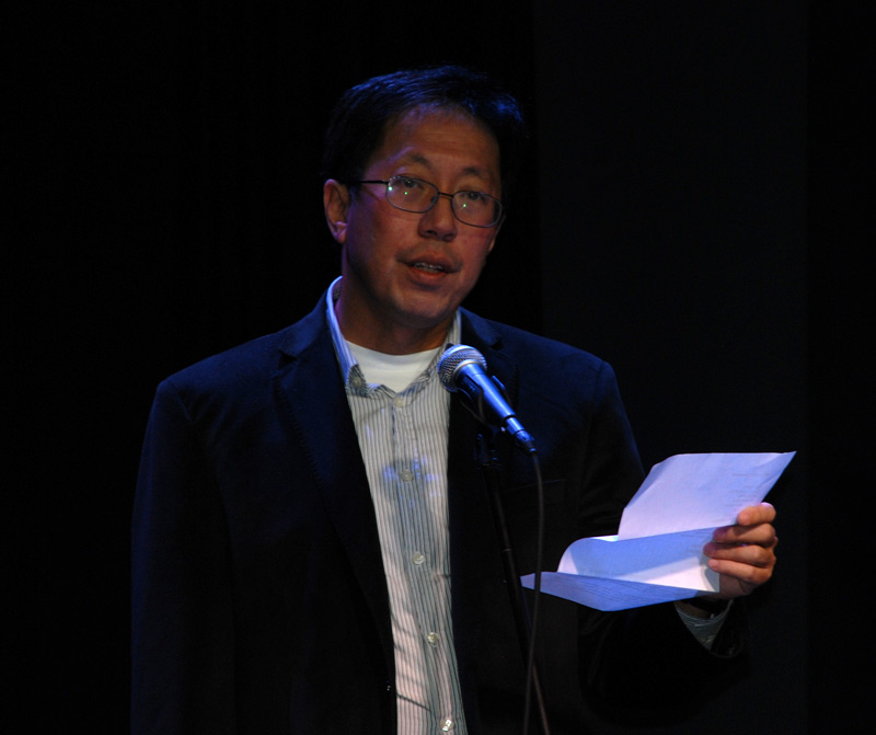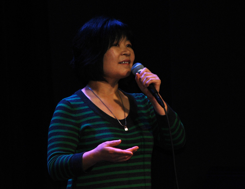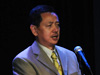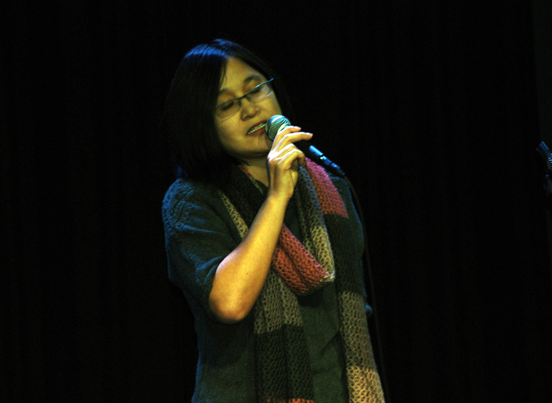 特地从威斯康辛州赶来的有着众多粉丝的网络朗诵爱好者子丹,为观众献上了南二楼的诗作《我是一条小溪》。字正腔圆的朗诵,给大家带来无限感慨和感动。