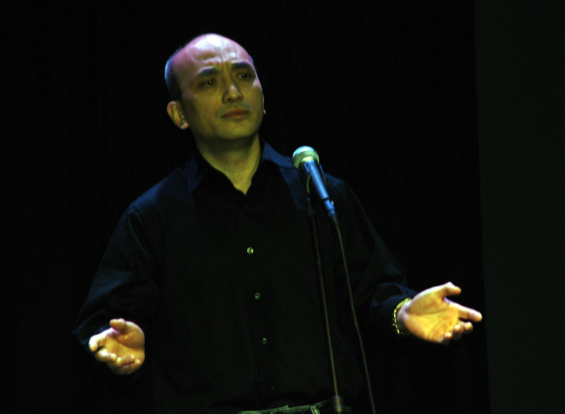 张力朗诵了网友元梁的作品 《我的自白》。深沉厚重的语调,倔强高昂的激情,极佳地表达了诗人追求平等自由的理想主义的侠骨柔情。