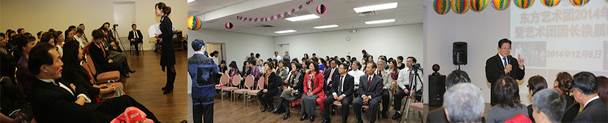 年会由东方创团团长张力主持。在年会上,来自合唱团、舞蹈团、话剧团、戏曲团、摄影协会的东方新老团员和老师们欢聚一堂,认真听取即将届满卸任的包敏团长对在任两年内的工作总结报告。包敏在回顾过去的工作时说:2013年,东方艺术团成功举办芝加哥地区首届以华人为主的室内声乐专场音乐会《且聆春雨》、东方品牌《金秋皓月》综艺晚会,得到了各界好评;话剧团成功推出话剧《我不是李白》,人物形象至今令人难忘;2014年,舞蹈团先后参加芝加哥市主办的亚裔春节演出、由亚洲文化集团主办湖南卫视导演执导的《民族风,中秋情》大型综艺晚会演出,并于9月20日、21日、22日连续三天参加在McCormick Place举行的大型展览会演出。这些演出活动加强了东方艺术团与各社区间的交流和合作,扩大了东方的社会影响和活动范围。同时,艺术团各个分团继续举办带有自身特点的年度活动,有声有色,既提高了演艺水平,又增加了团队凝聚力。包敏团长分别对辛勤工作的艺术团管理团队、对积极参加艺术团活动的团员及家属朋友、对热情支持东方的社会各界友人和团体表示感谢。他特别强调,东方之所以能在大芝加哥地区以高素质高艺术水准独树一帜,与艺术指导老师们的悉心指导和无私奉献密不可分。大家用热烈的掌声表达对包敏团长辛勤工作的感谢和肯定。