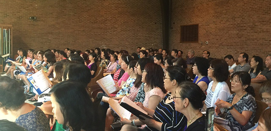 为了保证合唱排练的顺利进行,负责组织和管理音乐会各个合唱团的东方艺术团张力团长,安排芝加哥合排的东方合唱团团长李青, 合唱团副团长高纬和蔡旭苗及钢琴伴奏高瑛老师及负责场地和宣传的东方副团长程以克等仔细认真,早已在安排活动的各项细节。 更不用说,各个合唱队伍里有着众多的热心人,他们时时在用自己的热情和能力帮助合唱排练成功。